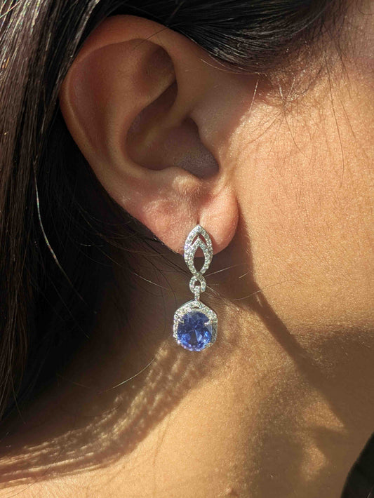 Blue Tanzanite Oval Silver Dangler Earrings For Women