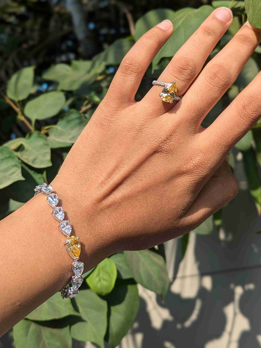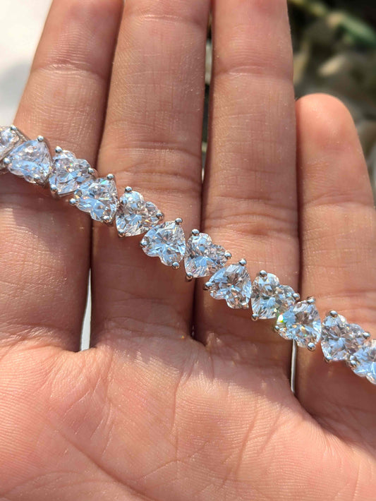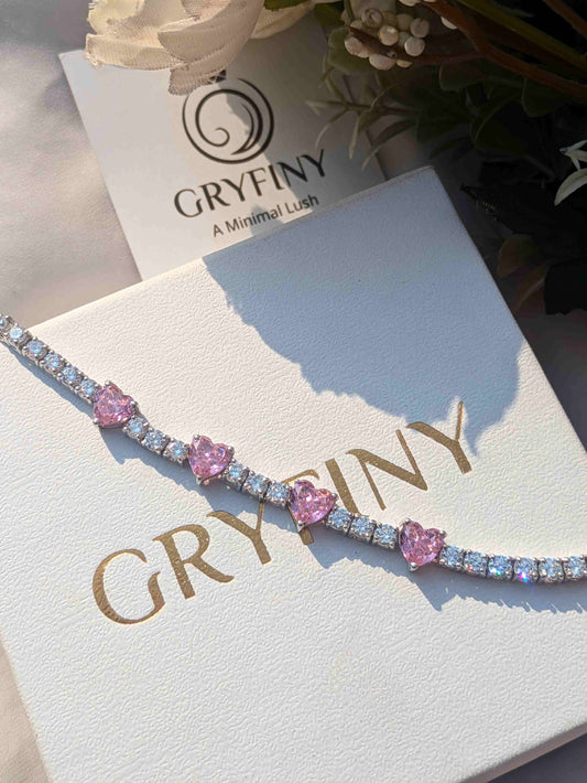 Pink Ice Crushed Heart Tennis Silver Bracelet