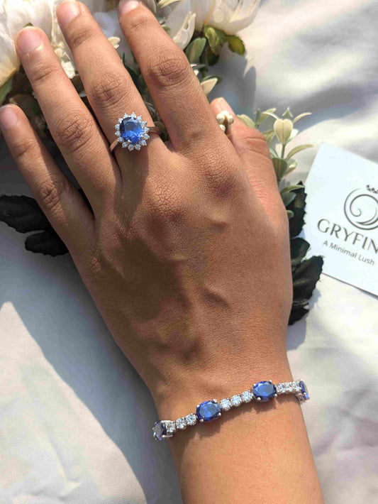 Blue Tanzanite Oval Tennis Silver Bracelet