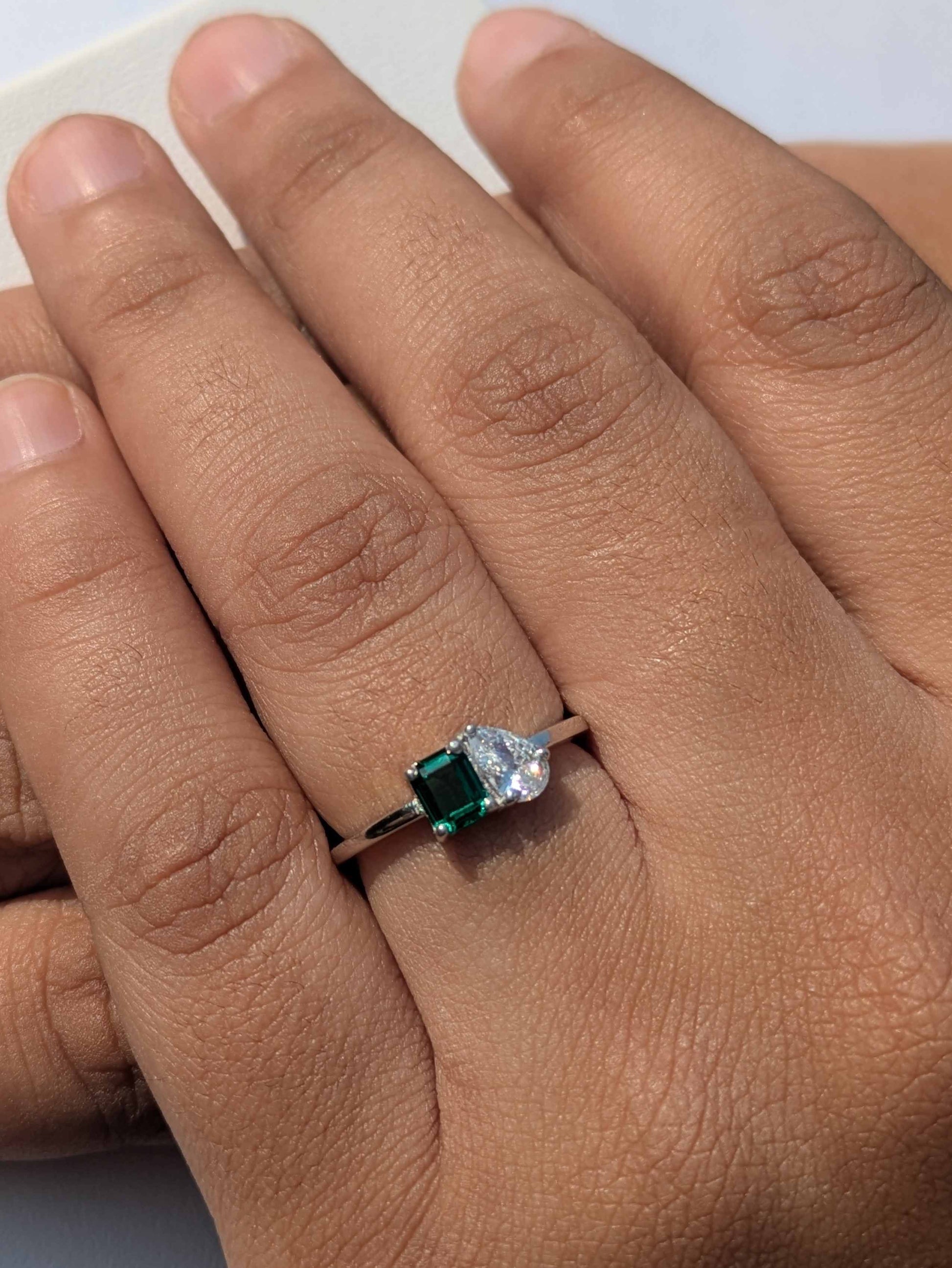 1.0Ct Green Emerald & Pear Toi Et Moi Solitaire Silver Ring