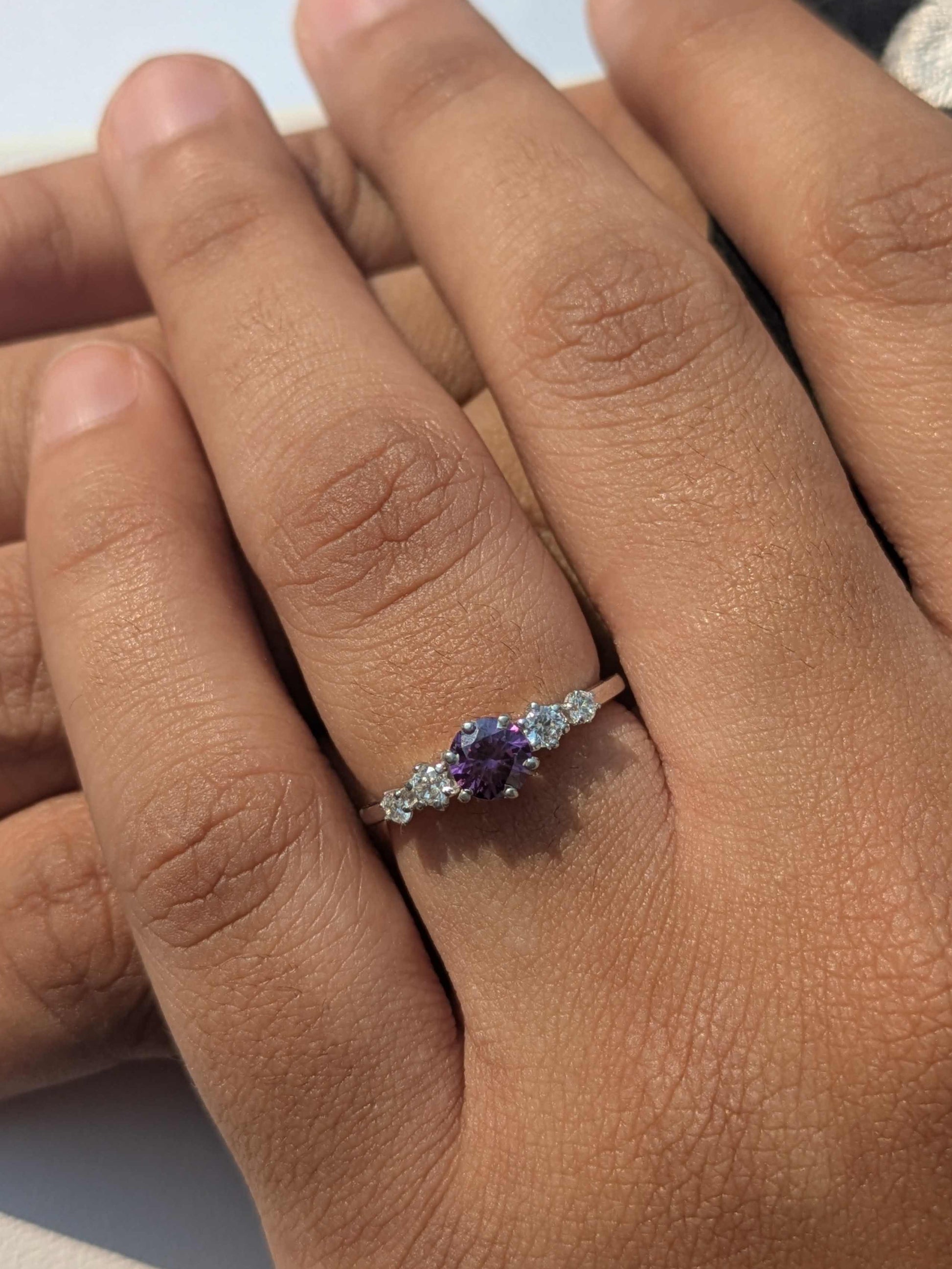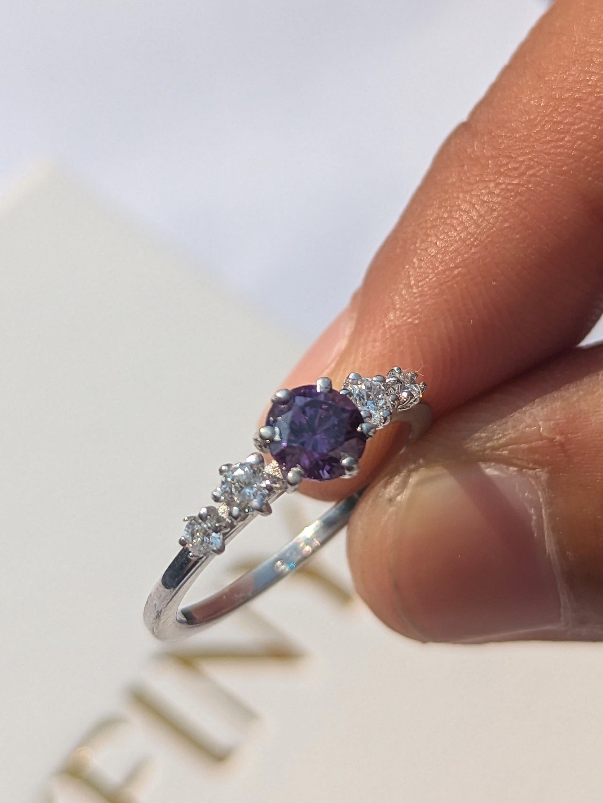 1.0Ct Purple Amethyst Silver Round Solitaire Ring For Women