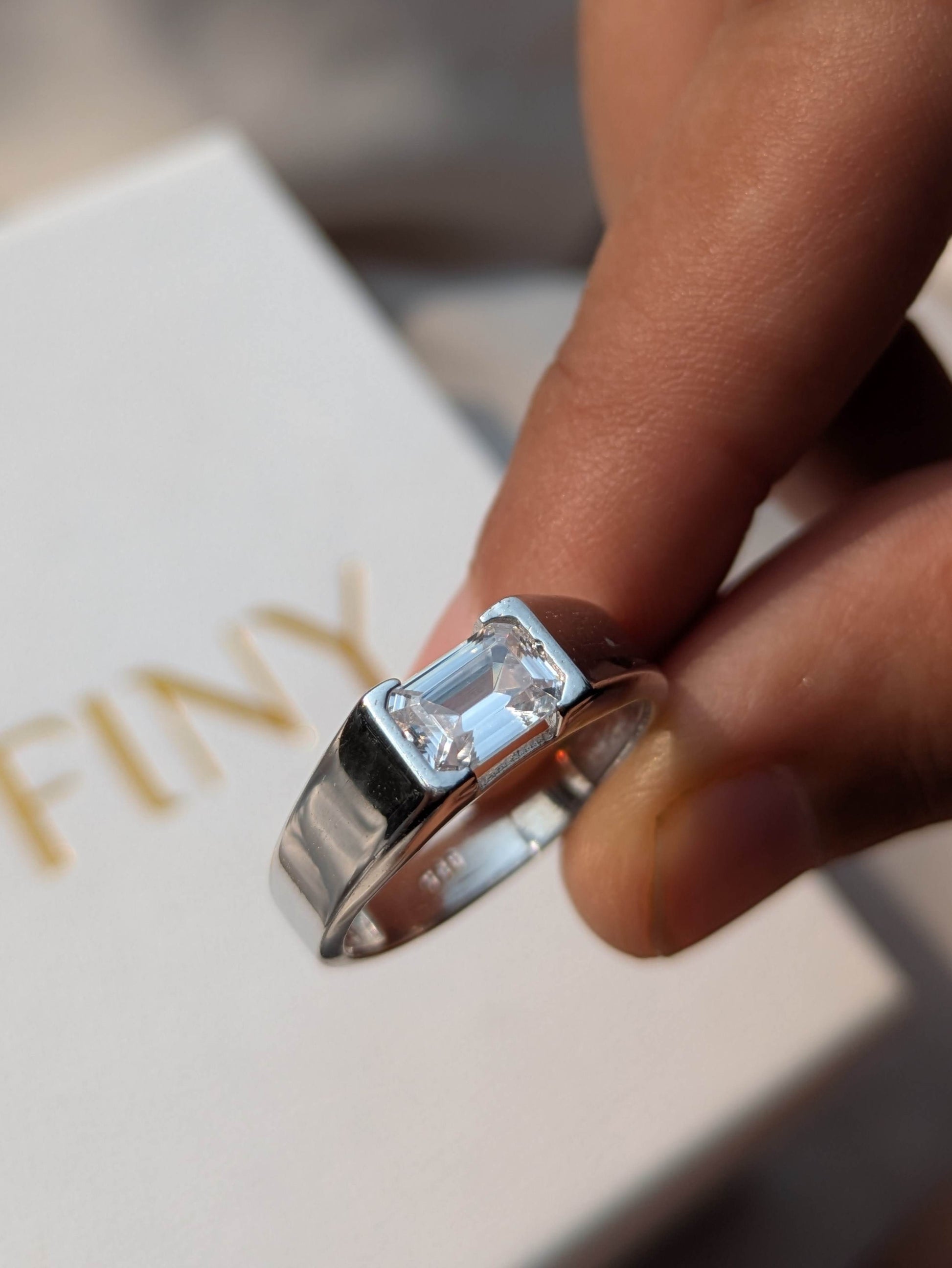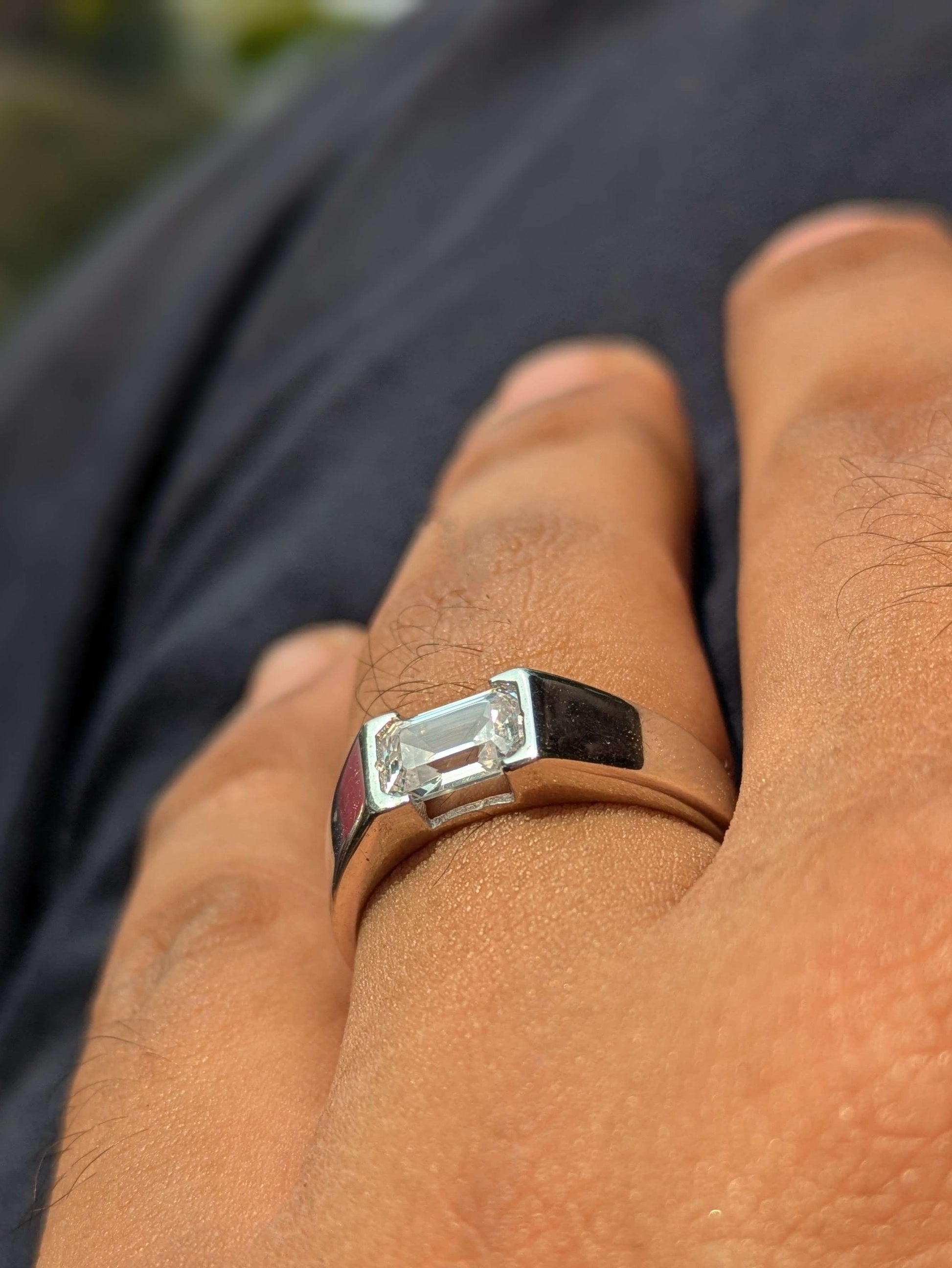 1 Ct Emerald Open Bezel Silver Engagement Ring For Men