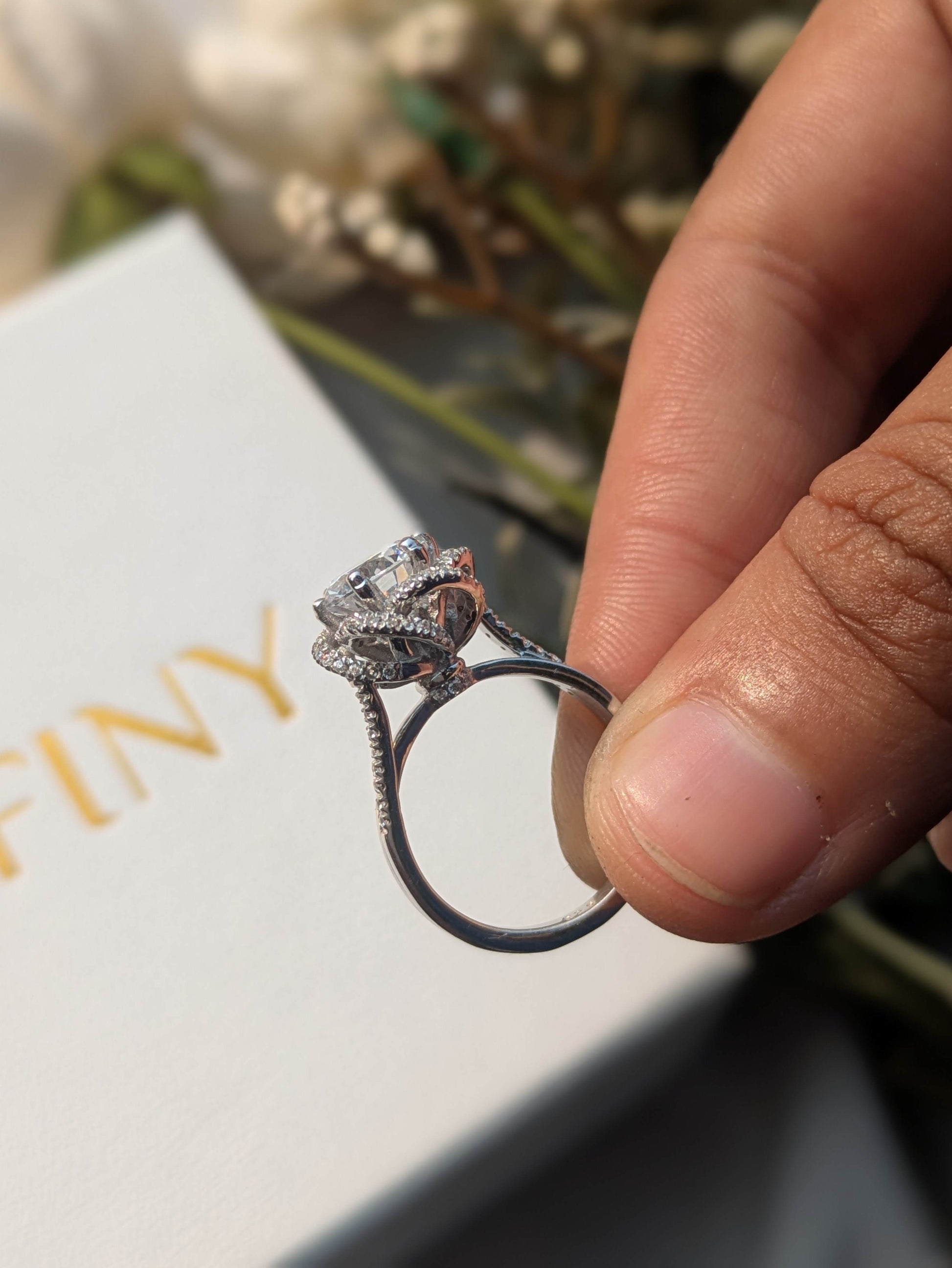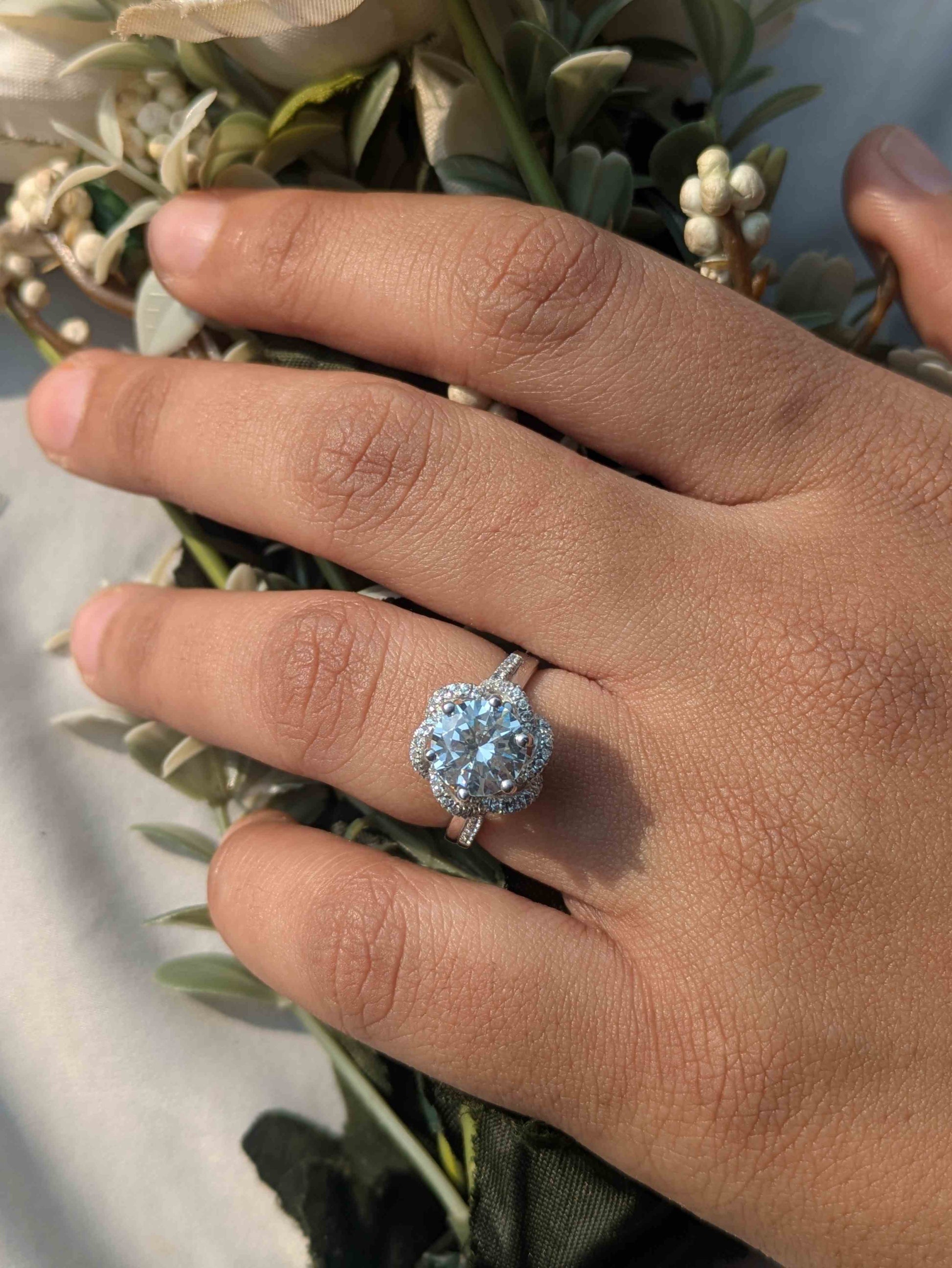 - The stone weight mentioned in the title is approximate and may differ by ±0.2 ct from the moissanite certificate. This weight is shown solely to help customers understand the stone’s approximate size and is not a commitment to the certified weight.
