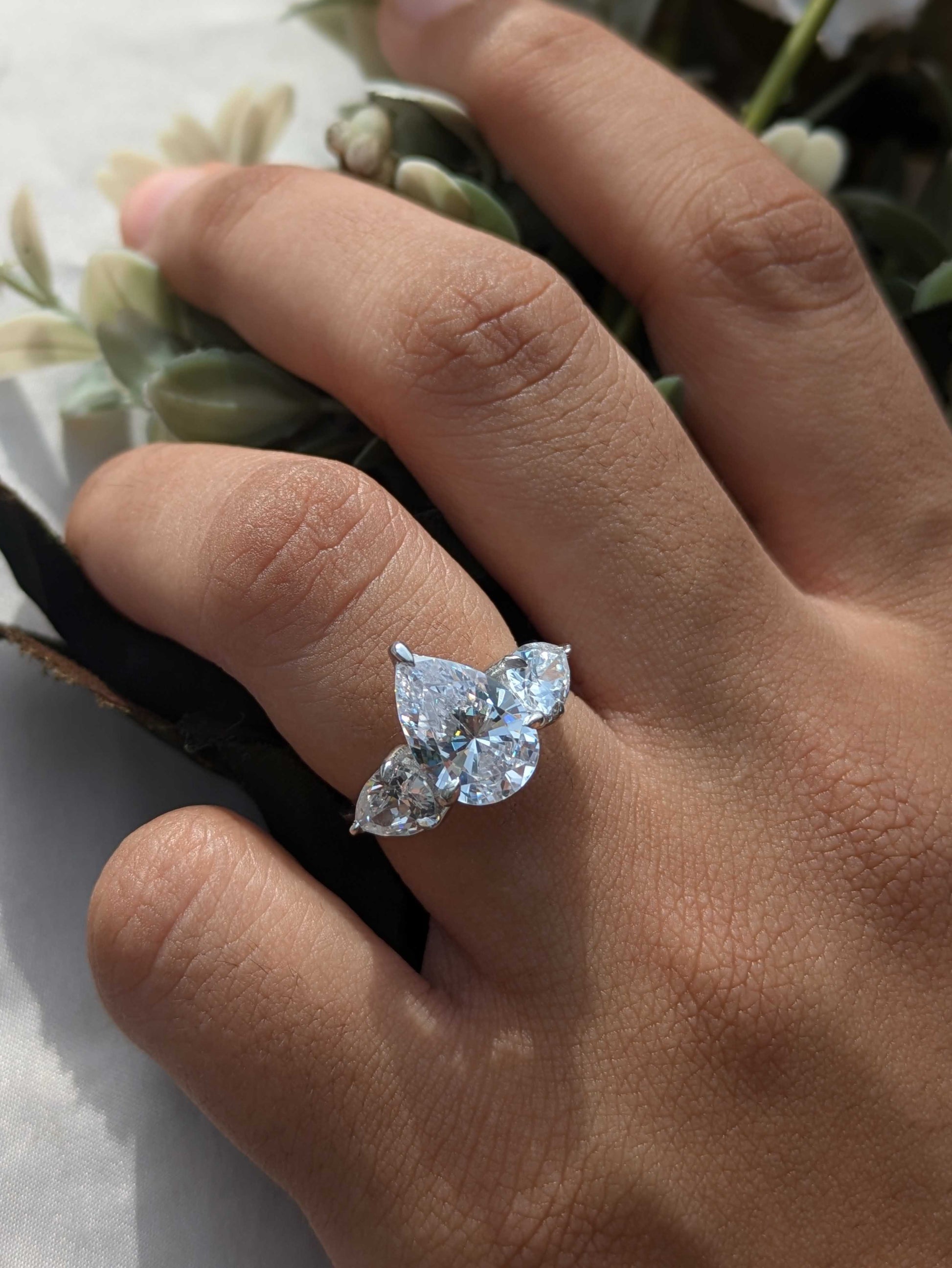 Pear 3-Stone Solitaire Silver Ring