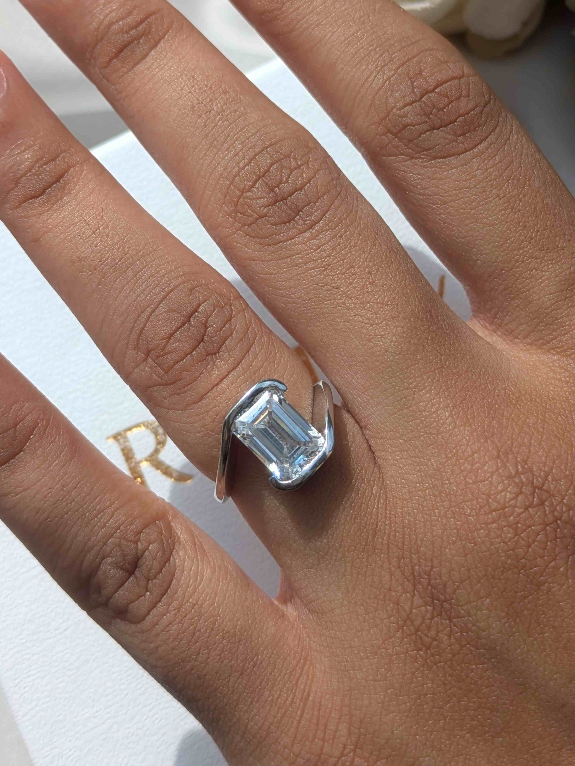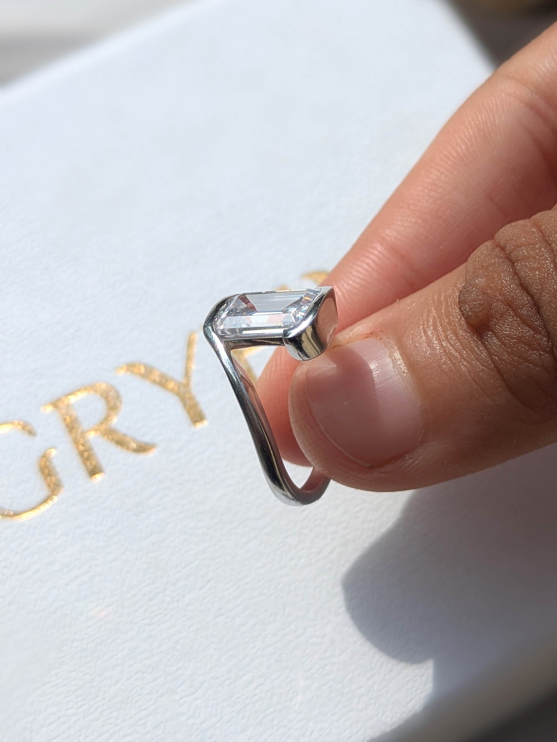 Zoey Emerald Half Bezel Solitaire Silver Ring
